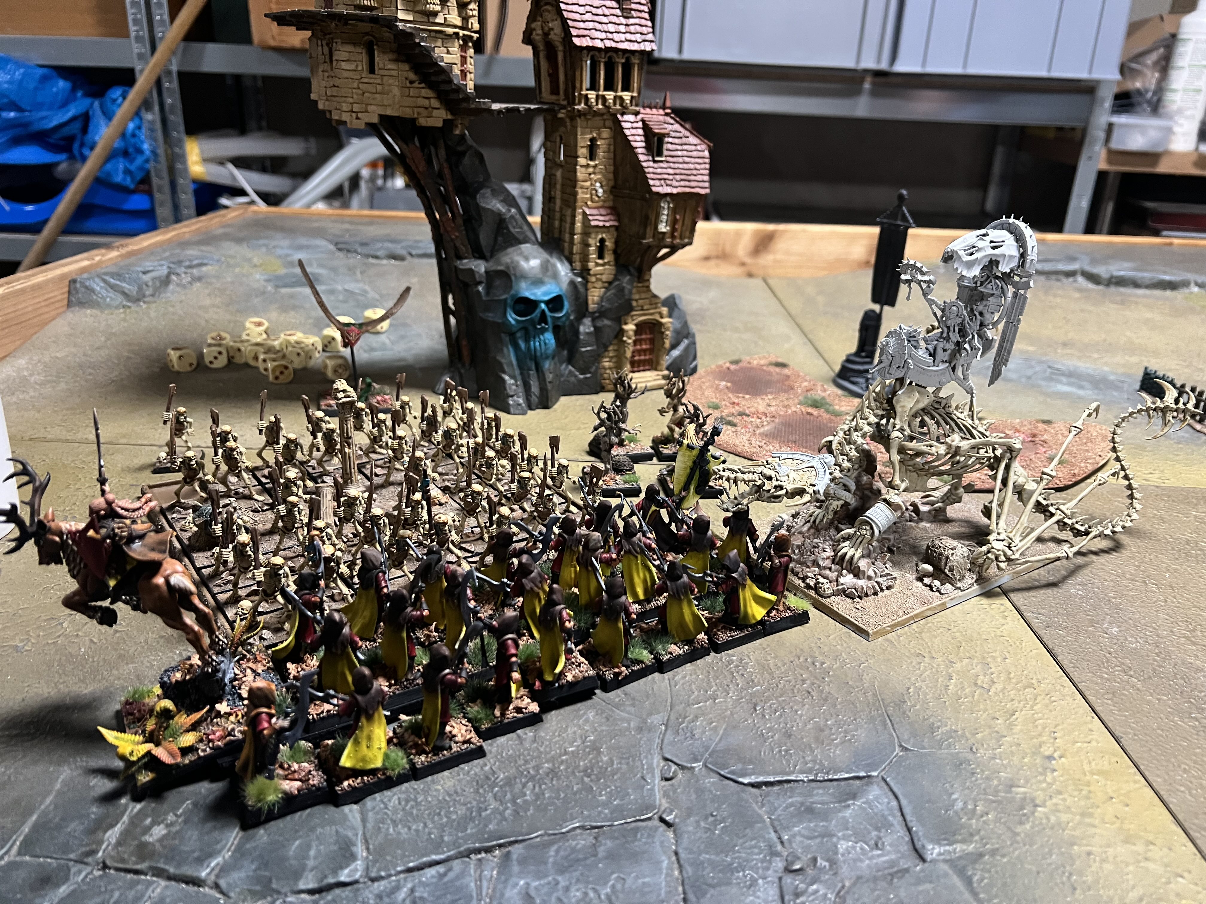 Doch der Tod Khemris war kein leises Verlöschen. Seine letzten beiden Sphinxen warfen sich gleichzeitig in die Bannwaldhüter, ein Aufprall aus uralter Wut und monumentalem Gewicht. Einer ihrer Schläge traf Thalendril Sturmgeweih. Der Fürst brach zusammen, sein Hirsch schrie, und als die Asrai ihn aus dem Fray zogen, war klar, dass er schwer getroffen war. Die Klinge, die einen Drachen getötet hatte, konnte ihn nicht vor der Rückhand eines steinernen Götzen bewahren.