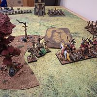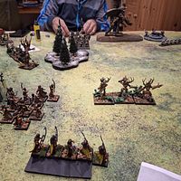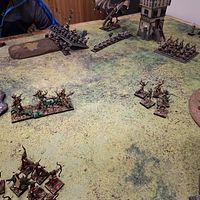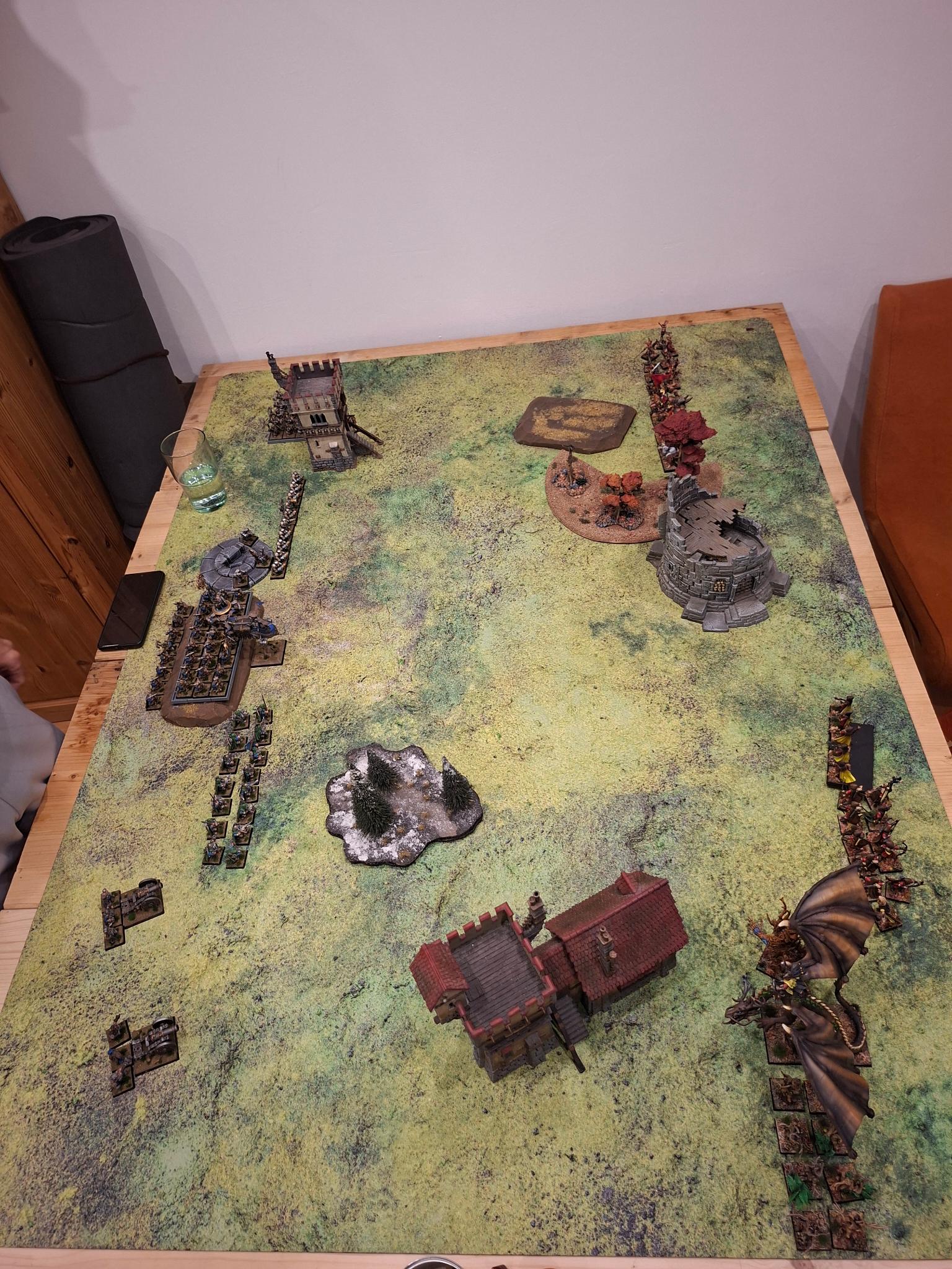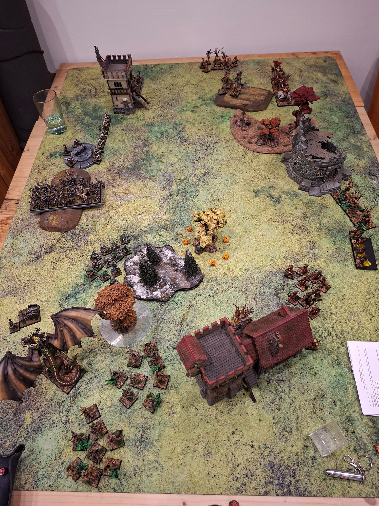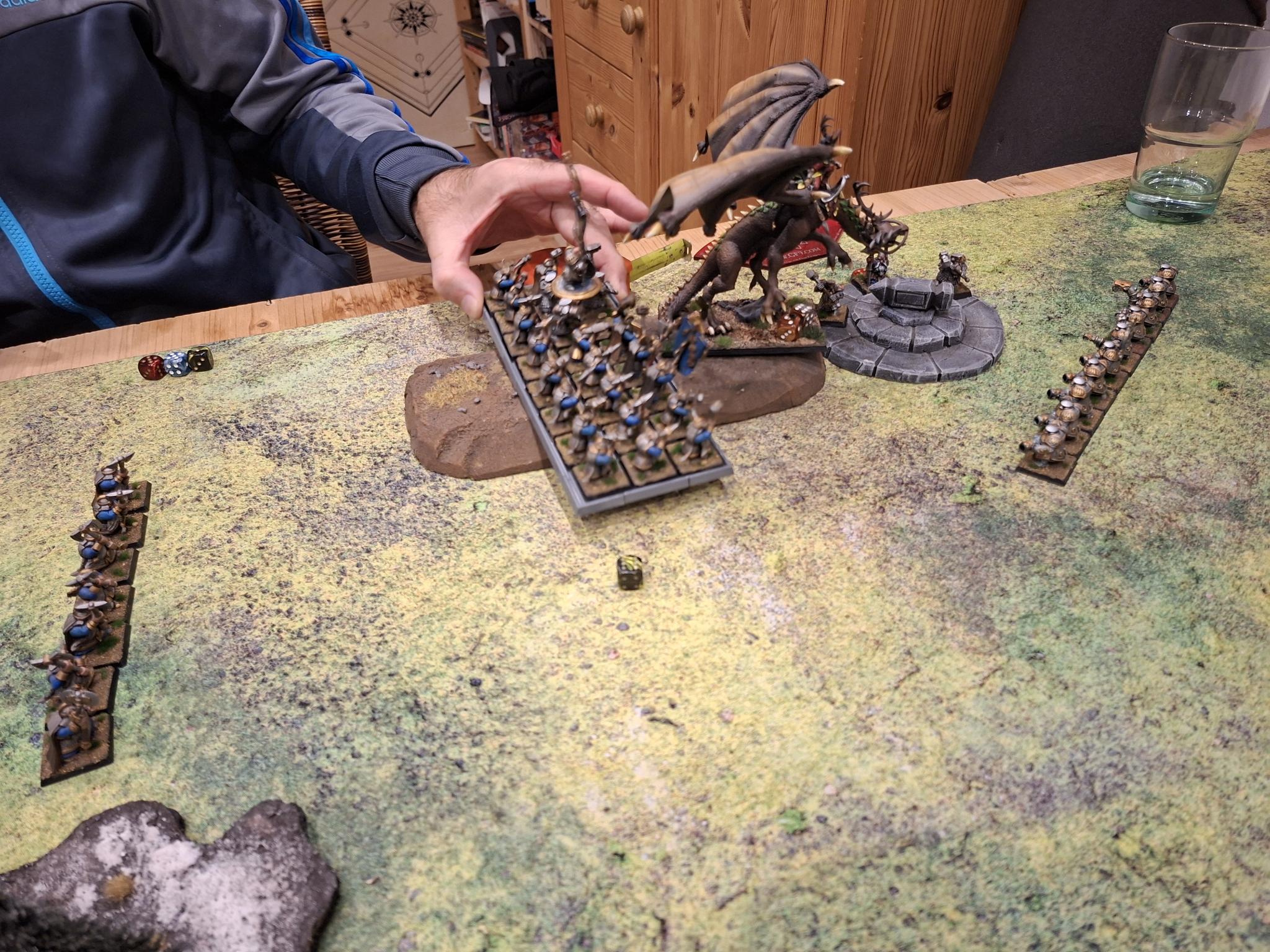 Doch die Natur selbst erwies sich nicht als unaufhaltsam. Zwei Einheiten Dryaden stürmten gegen die Armbrustschützen – und fanden ihr Ende im kalten Stahl der Zwergenbeile. Triumphierend standen die Schützen über einem Hügel aus gesplittertem Holz, nur um im nächsten Atemzug vom uralten Baummenschen gewürgt zu werden. Seine Ranken packten sie, zerdrückten Brustkörbe und brachen Knochen, bis nur noch ein Häuflein Überlebender zurückblieb.