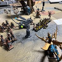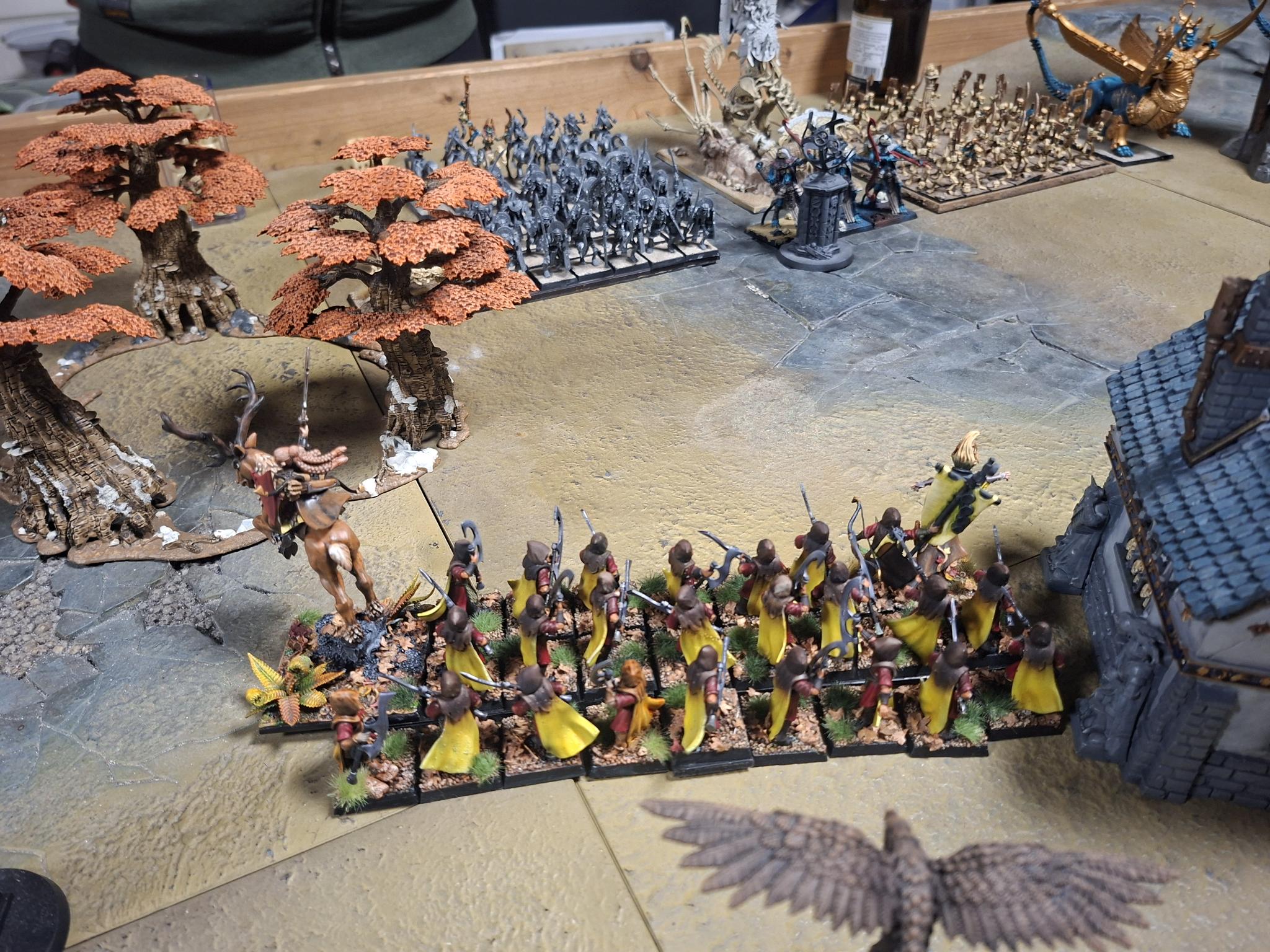 Doch der Tod Khemris war kein leises Verlöschen. Seine letzten beiden Sphinxen warfen sich gleichzeitig in die Bannwaldhüter, ein Aufprall aus uralter Wut und monumentalem Gewicht. Einer ihrer Schläge traf Thalendril Sturmgeweih. Der Fürst brach zusammen, sein Hirsch schrie, und als die Asrai ihn aus dem Fray zogen, war klar, dass er schwer getroffen war. Die Klinge, die einen Drachen getötet hatte, konnte ihn nicht vor der Rückhand eines steinernen Götzen bewahren.